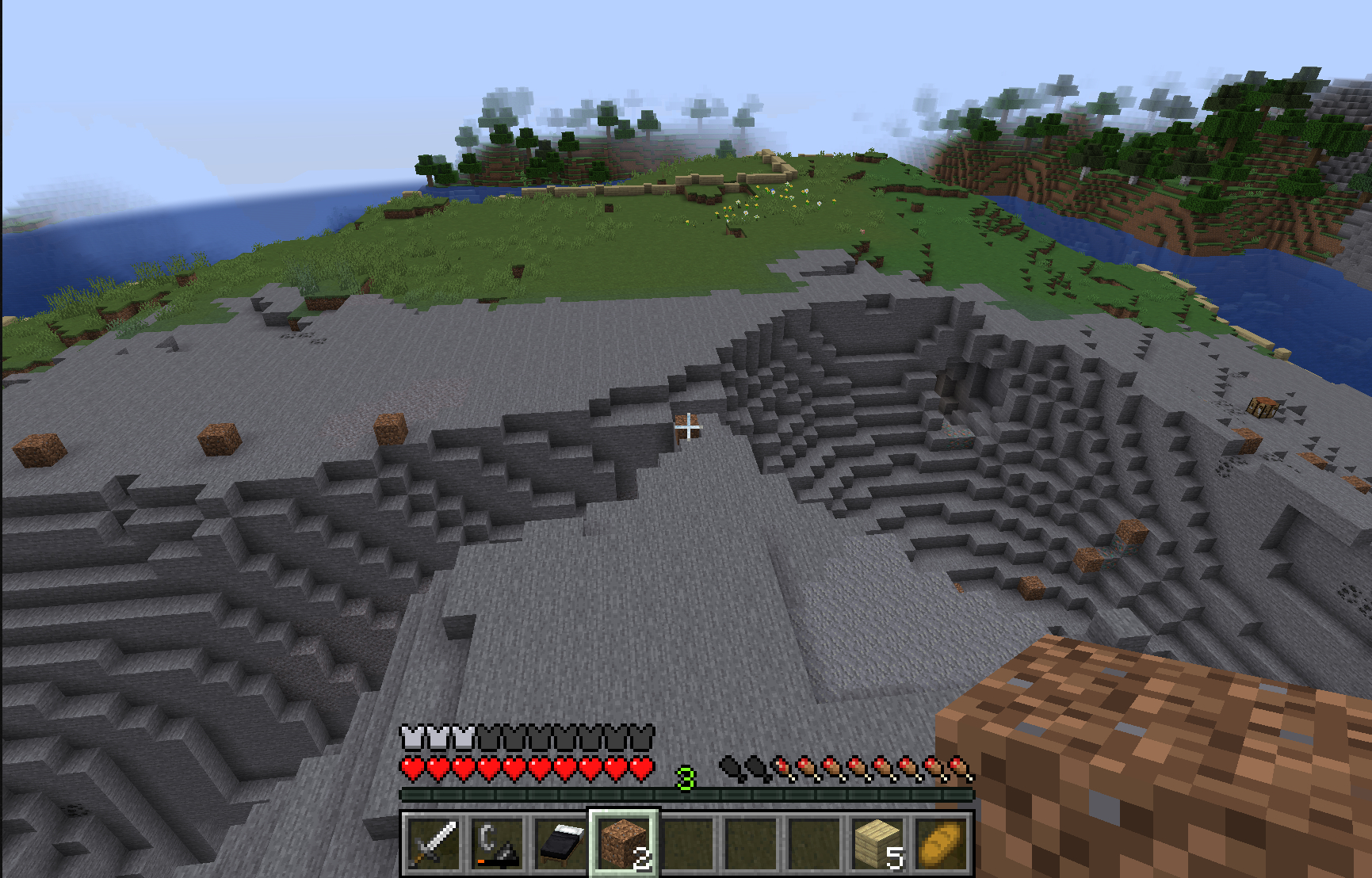 I began a new world not long before beginning this site! Exploring the area a bit, I found that I was on a rocky island, very close to a mainland which held a mixed oak and birch forest. This world does not have any generating structures in it, as I find villages seem too common in modern versions of Minecraft, and it really feels like cheating having such abundant resources nearly guaranteed so soon.